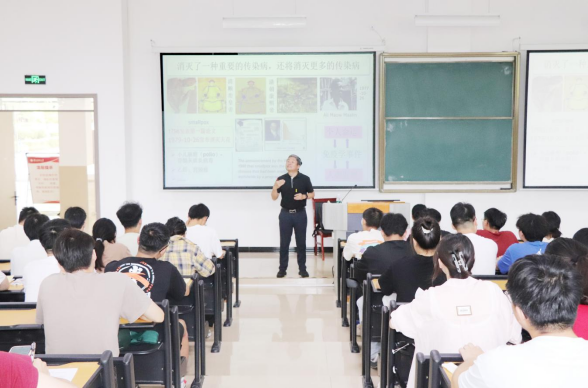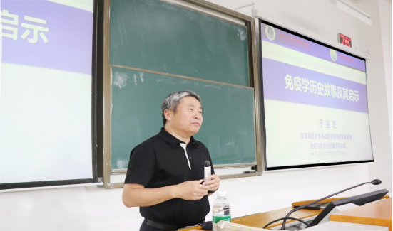7月17日上午,免疫学专家、人民卫生出版社《医学免疫学》副主编、博士生导师于益芝教授走进遵义医科大学课堂,为150余名本科生带来题为“免疫学历史故事及其启示”的讲座。活动由基础医学院副院长刘晖教授主持。