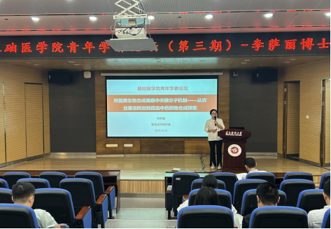 10月10日上午,基础医学院顺利举办了青年学者论坛(第三期)。本次论坛由人体寄生虫学教研室青年博士李萨丽担任主讲,作了题为“斑蝥素生物合成通路中关键分子机制——从农业害虫防治到昆虫中药药物合成探索”的学术讲座。人体寄生虫学教研室主任周必英教授担任主持,学院全体博士均参加了此次论坛。