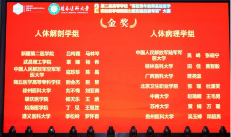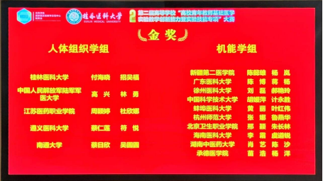 10月26日,第二届高等学校“青年教师基础医学实验教学创新能力暨实验技能专项”总决赛圆满结束。本次大赛由高等学校国家级实验教学示范中心联席会基础医学组、高等学校基础医学教师实践技能协同创新发展联盟联合主办,桂林医科大学承办。决赛汇聚了来自全国73所院校的150支青年教师队伍。我院派出的3支参赛队伍均载誉而归,其中人体解剖学和人体组织学两组荣获大赛金奖,机能学组获得铜奖。