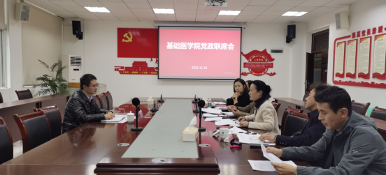 学校副校长徐林对此次党政联席会进行指导。他认为,基础医学院党政班子重视议事规则,能够提前对议题进行审核,针对学院学科、科研等相关议题展开讨论研究,达成了会议目的。同时,他对基础医学院学科建设、科研方面提出要求。他强调,学院“十五五”期间要以博士点申报为重要目标,进一步优化学科布局,实现国家级人才突破,提升学科核心竞争力。在科研工作上,要加强有组织的科研,积极申报高水平科研项目,争取国家级重点实验室等平台建设突破,产出更多具有影响力的科研成果,为学校“十五五”建设目标实现贡献更大力量。