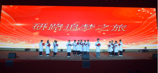 《医路长明》以医学成长故事为蓝本,通过舞台演绎展现医学生从迷茫到坚定的蜕变,诠释了医学誓言;研究生们以《研路追梦之旅》的深情朗诵,分享科研与临床结合的“研路”故事;优雅的舞姿《爱的圆舞曲》传递着青春的美好与协作的力量;动感的现代舞《Yonce like Jennie》为晚会画上圆满句号。