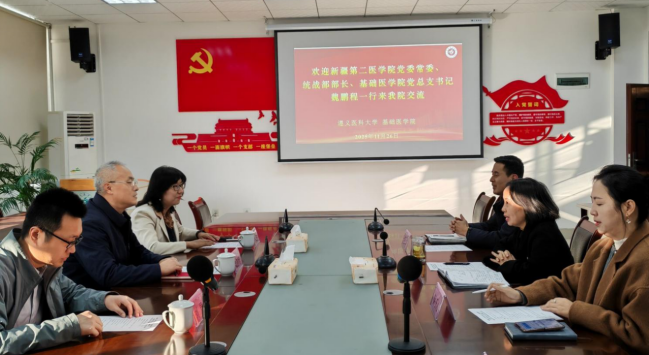 我院党委书记罗军敏首先致欢迎词,并从我院基本概况、教育教学、学科科研及服务社会等方面进行了介绍。新疆第二医学院党委常委、统战部部长、基础医学院党总支书记魏鹏程及基础医学院院长夏春梅分别介绍了新疆第二医学院学校及基础医学院的办学定位、师资队伍、专业建设、发展成果及特色优势等情况,随后双方就人才引进、教育教学及学科建设等方面开展了充分深入的交流。