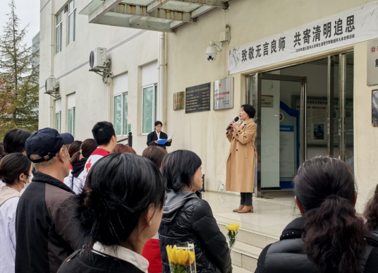 2026年4月2日下午,清明雨润之时,遵义医科大学在解剖楼前举行“致敬无言良师,共寄清明追思”缅怀活动。遵义市红十字会相关领导、遗体捐献者家属代表、学校基础医学院师生代表齐聚,以庄重仪式致敬大体老师,传递对生命的敬畏与感恩。