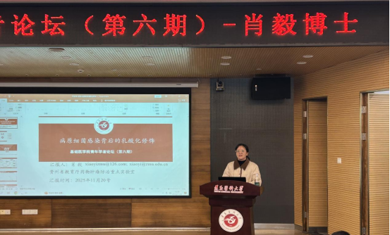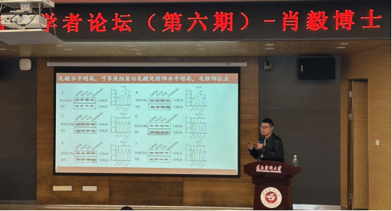 11 月 20 日,基础医学院青年学者论坛(第六期)如期举行。本次论坛由特色药物肿瘤防治重点实验室肖毅博士主讲,学院领导班子出席,药物肿瘤防治重点实验室主任李三华主持,全院博士齐聚交流,共探学术前沿。
