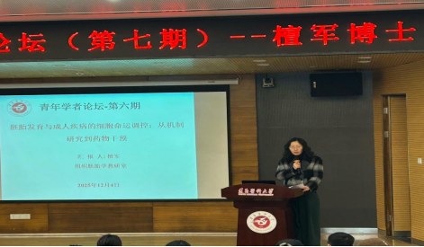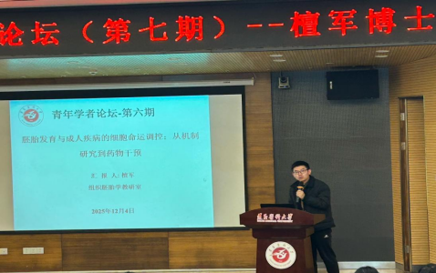 12 月 4 日,基础医学院青年学者论坛(第七期)如期举行。本次论坛由组织学与胚胎学教研室的檀军博士主讲,学院领导班子出席,组织学与胚胎学教研室主任任艳萍主持,学院博士及青年教师参与。