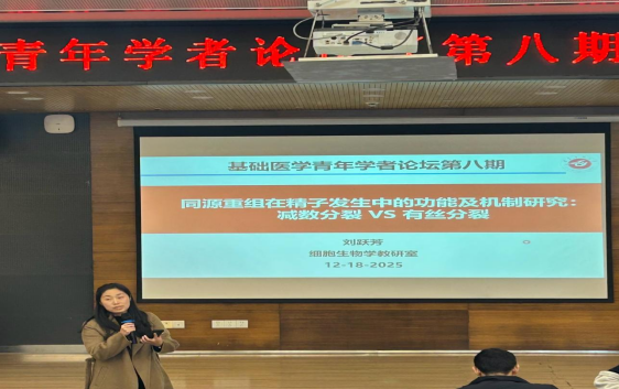 12月18日,基础医学院青年学者论坛(第八期)如期举行。本次论坛由细胞生物学教研室刘跃芳博士主讲,学院副院长韩勇、生科院副院长保玉心出席,论坛由细胞生物学教研室主任侯晓晖教授主持,学院博士参加了本次论坛。